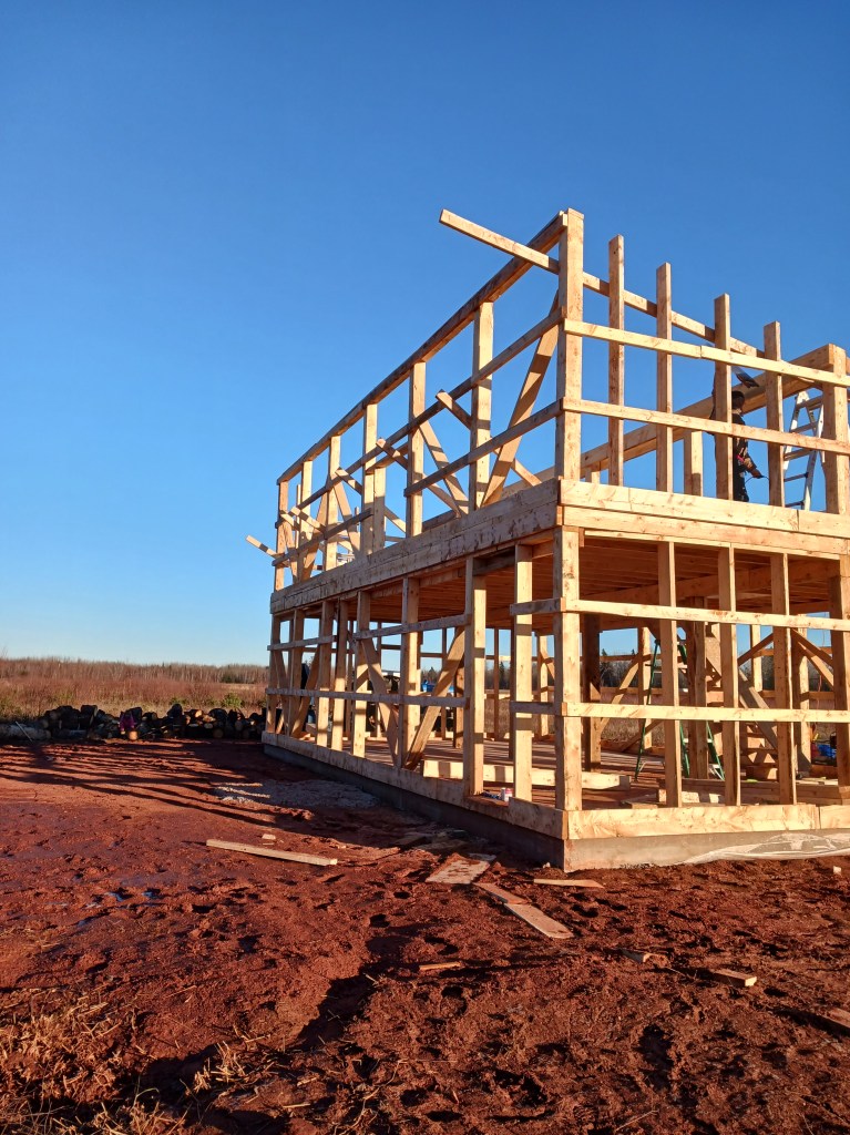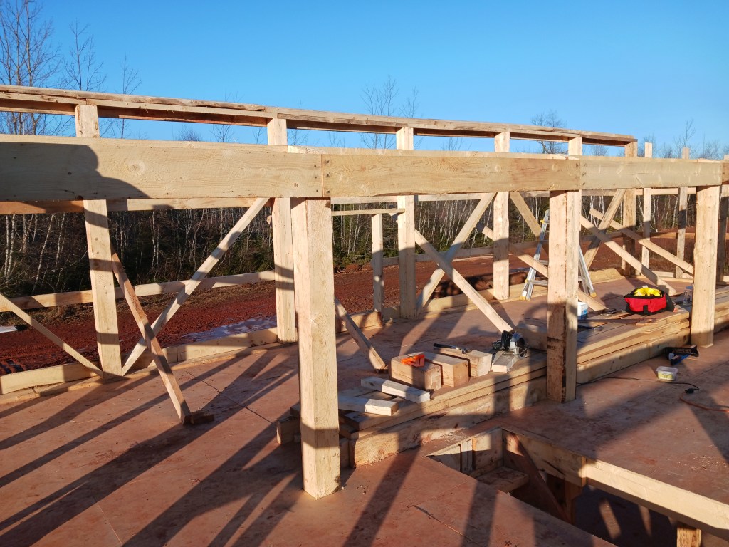 Just like on the small wall, the sillplate is a double layer. The bottom layer goes to the very edges of the structure, the top layer stops six inches short of the edge on both ends. It isnt a complicated job, except for the height. And even then, if the height was in the CENTER of the structure, it wouldnt be so bad. It’s the 17ft in the air, on the edge of a building part that both of us dread. It just doesn’t feel safe at all.