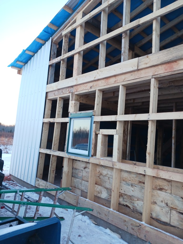 Having finished the one wall, we decided to begin on the last. We only got 2 of the 6.6 sheets up before we lost both daylight and feeling in our fingers, but it is nonetheless a start. We are less than a wall away from an actual building.