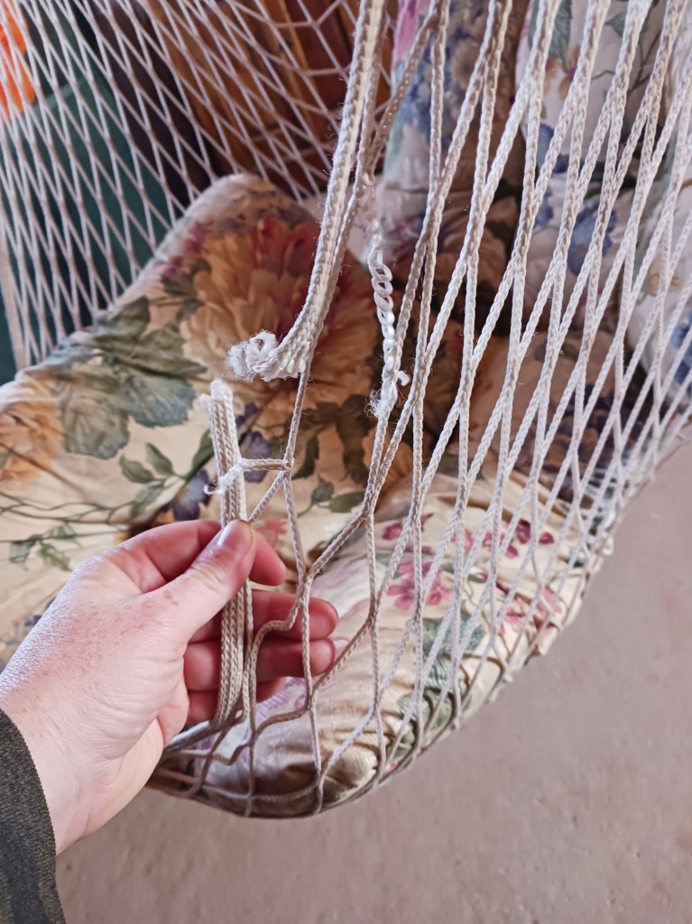 This evening, I am going to see what I can do to repair the frayed section of the hammock chair: