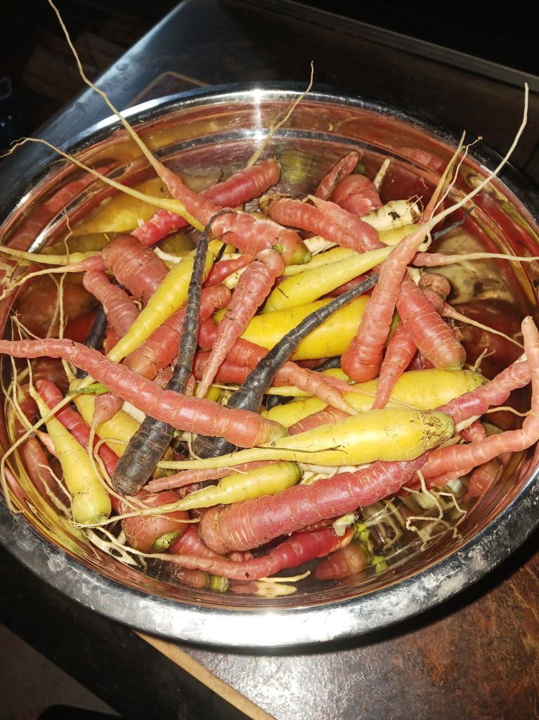 I harvested out the carrots – all but for a few of each colour I left to go to seed next year. I dont often have success with carrots, so I am quite pleased. The red and yellow did considerably better than the black